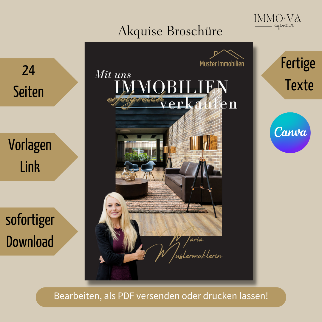 Edle Akquise Broschüre, Image Broschüre, Akquise Hilfe für Makler als Canva-Template ✶Digitales Produkt/Vorlagen-Link ✶