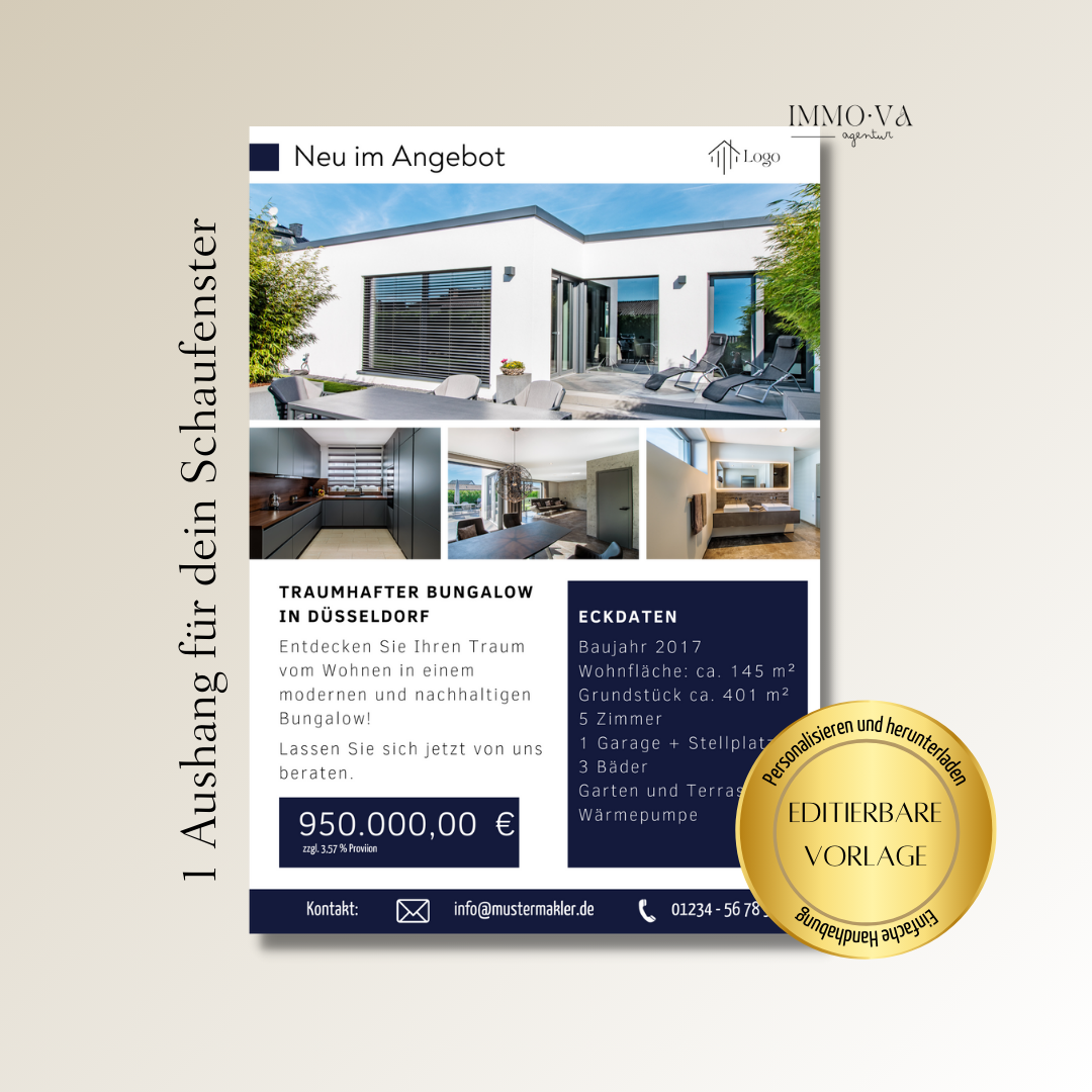 Paket: Exposé, Schaufenster Aushang u. 6 Postkarten für Immobilienmakler als Canva Template.✶✶Digitales Produkt/Vorlagen-Link✶